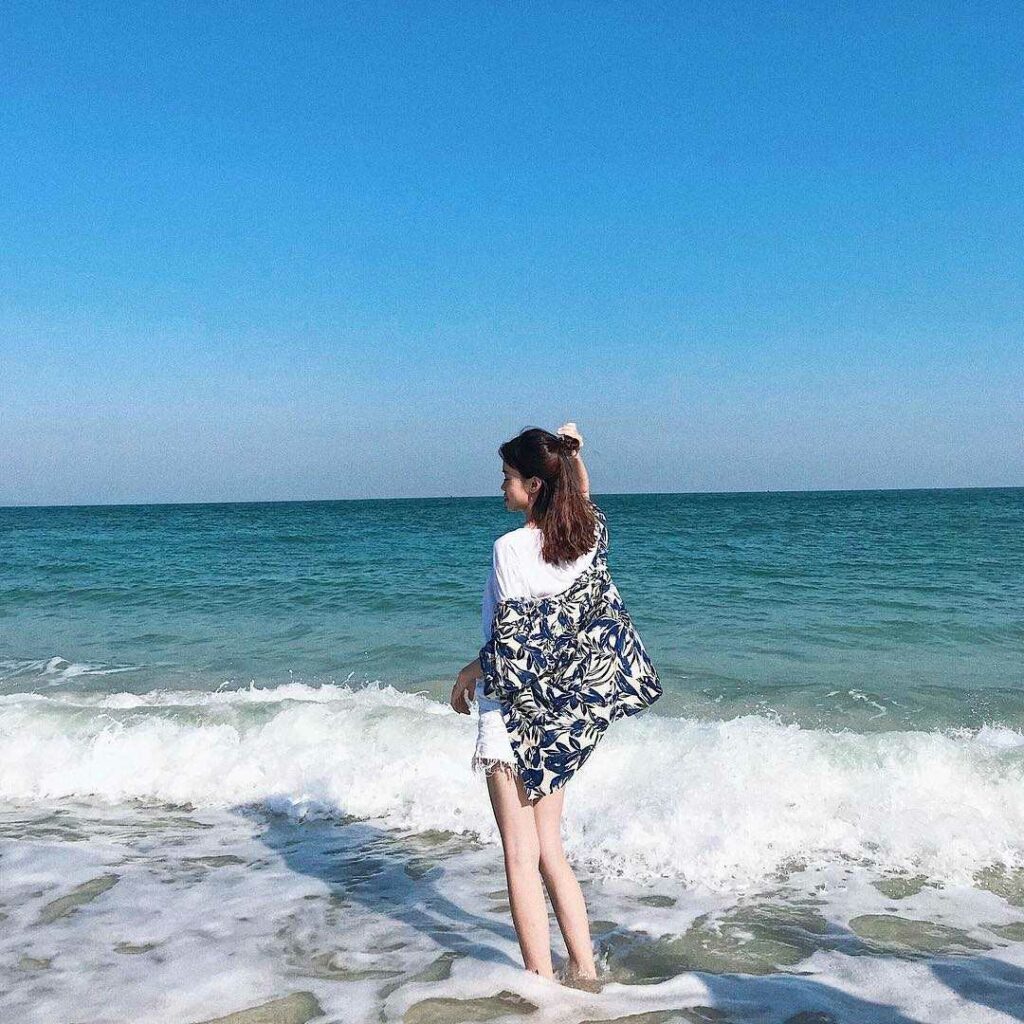 Dạo bộ, chụp hoàng hôn, tổ chức picnic nhẹ — bãi biển dài, cát mịn, nước trong và ít sóng vào những ngày đẹp.